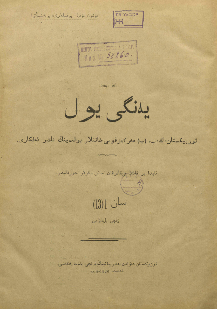 Бизга ушбу архивни тиклашда яқиндан ёрдам бергани учун Ўзбекистон Миллий кутубхонаси раҳбариятига миннатдорлик билдирамиз! «Саодат» журналининг 1926 йилги № 1-сони.