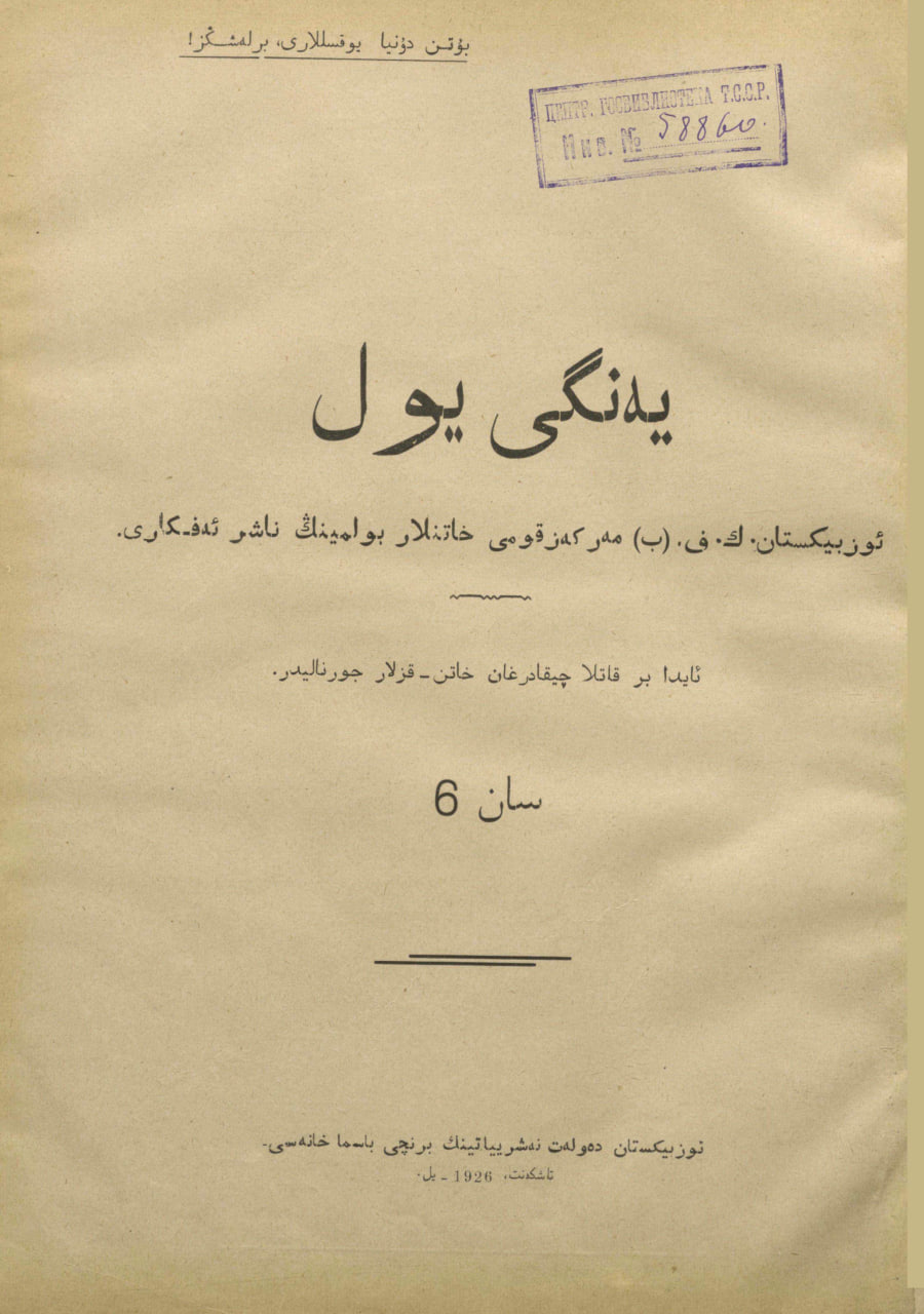 «Саодат» (ўша даврдаги номи – «Янги йўл» деб аталган) журналининг 1926 йилги № 6-сони. Муҳаррири – Фотима Ниёзова.