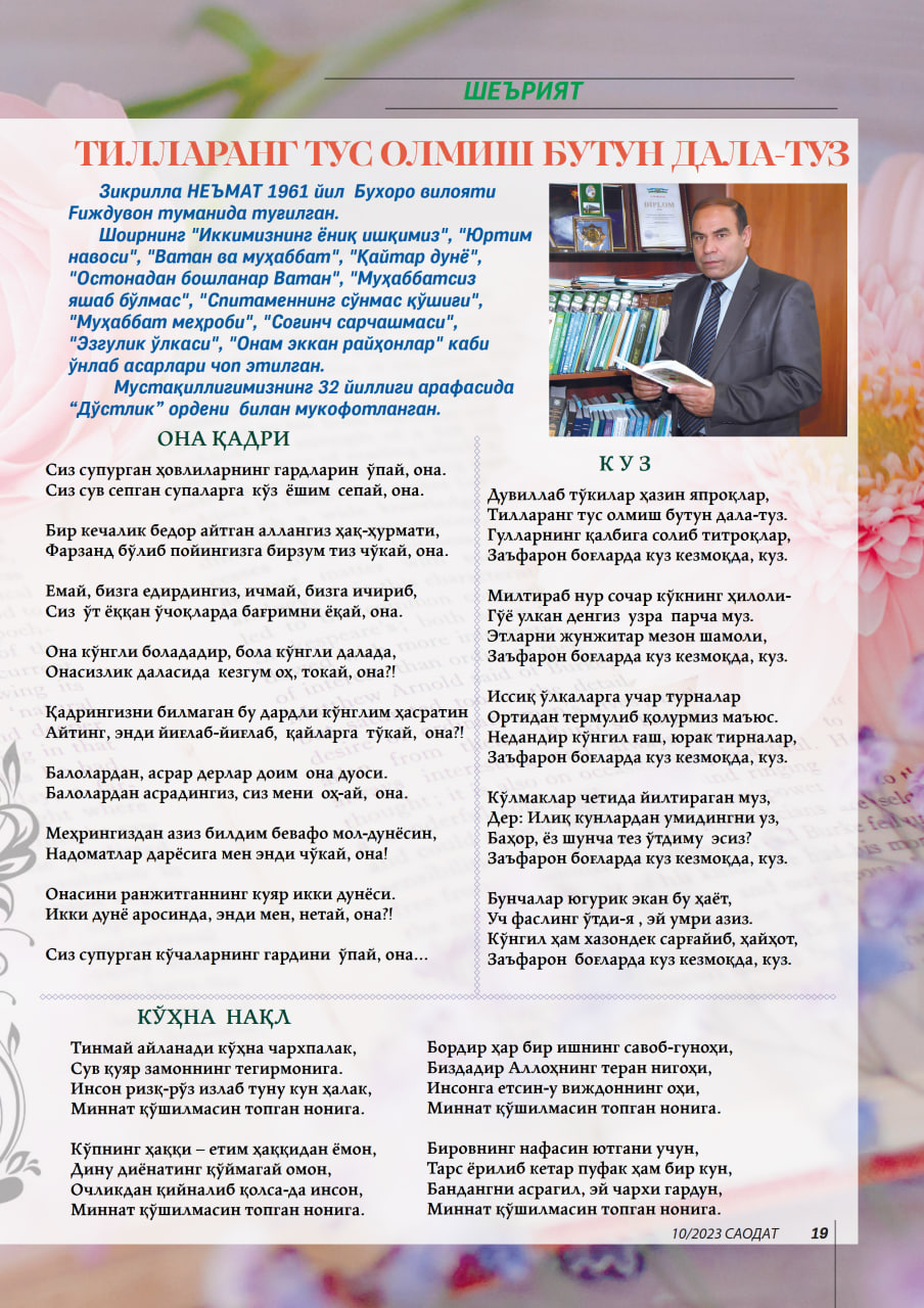 Бу баҳорнинг чин отини айтиб беринг, шоирей.